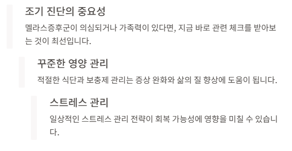 멜라스증후군은 희귀하고 무서운 질병이지만, 조기 진단과 꾸준한 영양 관리, 증상별 대응으로